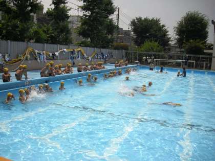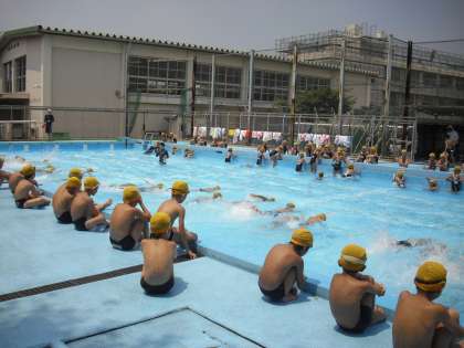 今日は金曜日、1年生は初めての水泳検定日をむかえました。結果はどうだったでしょうか。ひまわりも夏の日差しを背に受けて暑そうです。