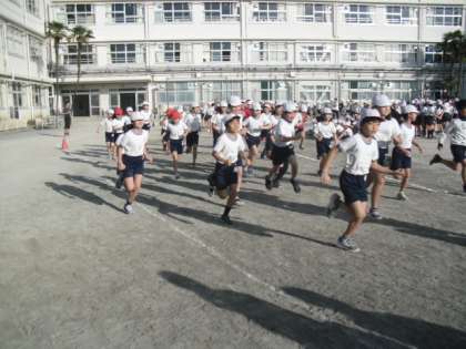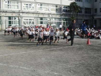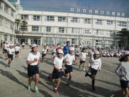 前半は1・2・3年生、後半は4・5・6年生が校庭を走ります。