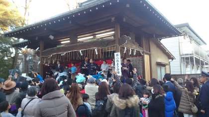 今年も、年男・年女の児童8名が招待され、駒繋神社の節分祭に参加しました。