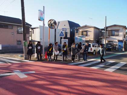 学校公開の期間に、通学路にPTAの方が立ってくださり、あいさつ運動を展開しています。