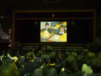保護者の方とのゲームがあり、保護者の方に「ありがとう」を伝えます。