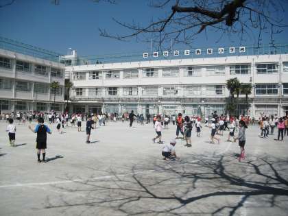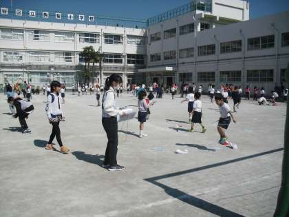 素晴らしく晴れた空の下、多くの子どもたちがなわとびに取り組んでいました。
