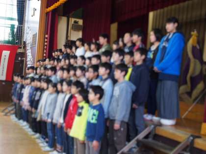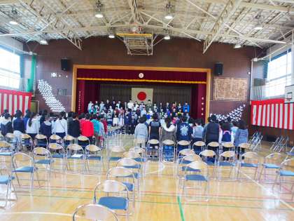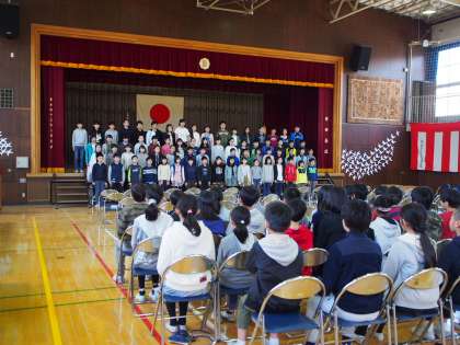 一週間後の卒業式に向けて、5年生と6年生で、卒業式の練習を進めています。