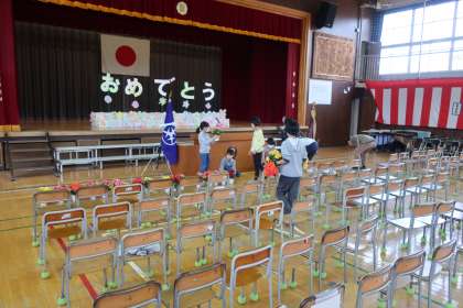新6年生は、入学式の式場となる体育館の準備と、1年生の教室の準備をしてくれています。