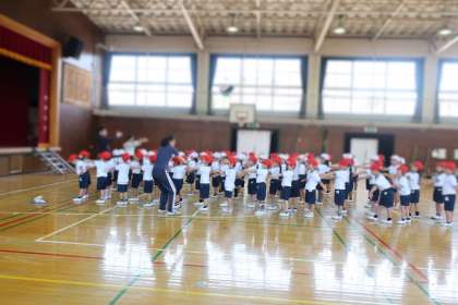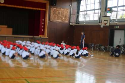 整列の仕方や体育座りなど、まず基本的なことを学びます。