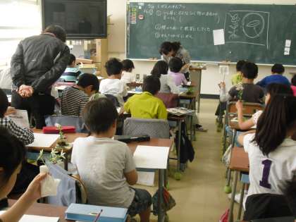 理科の学習に理科支援員、英語の学習に英語学習支援員が入るときがあります。担任と支援員がともに指導することで、個に応じた対応をできるようにしたり、より専門的な指導をできるようにしたりしています。