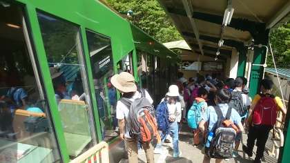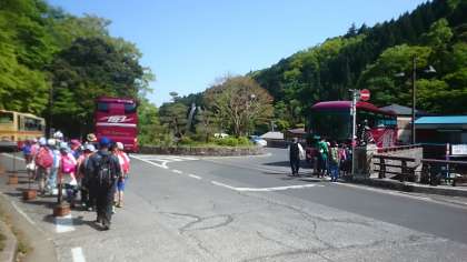 ケーブルカーを降り、バスに乗りました。予定通り、学校に向けて出発しました。
