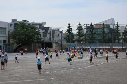 低学年のリレーの選手は、朝練をがんばっています。