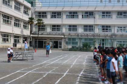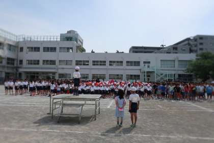 校長の話の後、なわとび指導員に認定証を渡しました。