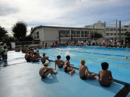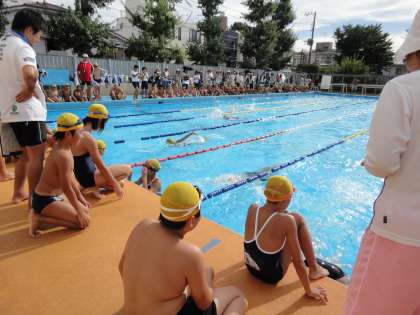 猛暑の中、5・6年生による水泳記録会が無事終了しました。