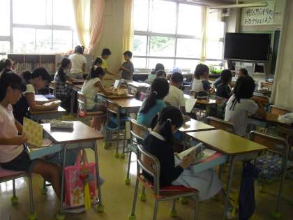 毎週木曜日の始業前は、本に少しでも親しんでもらおうと全クラス「朝読書」の時間を設定しています。6年生の教室では保護者による読み聞かせが行われていました。間もなく「読書の秋」本番となります。