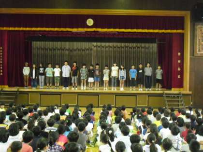 図書委員会の児童が中心となり、読書集会が開かれました。