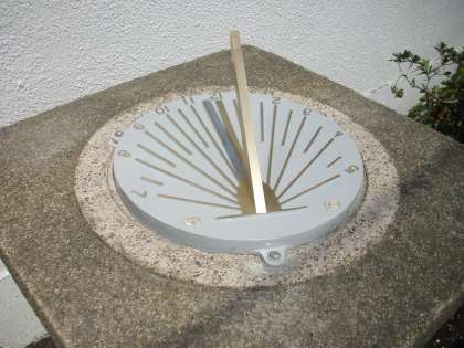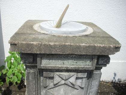 体育館南に設置されていた日時計が、工事の関係で職員室前の花壇に移設されました。本校第21回卒業生の卒業記念品です。時計の部分は壊れていましたが、移設を機に新しいものに交換しました。分、秒までは読み取れませんが時の流れがゆったりとした感じがしてとてもいいです。ただし、晴れていることが条件です。