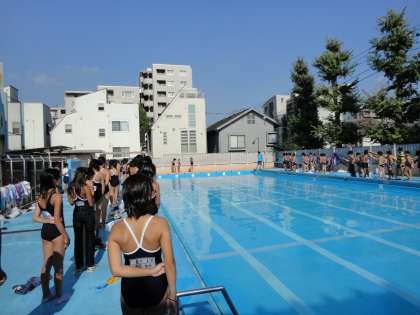 台風一過、盛夏復活を思わせる陽射しの中、6年生のプール納めが行われました。