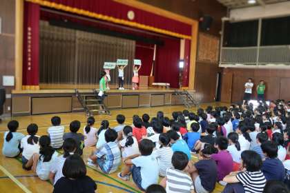 校長の話は、先週の九州北部の記録的豪雨についてでした。自分に今できることをご家庭でも話題にしてみてください。