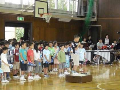 今朝の音楽集会は2年生の合唱「アイスクリーム」と合奏「森の音楽家」の発表でした。始めの挨拶や終わりの挨拶も合唱・合奏に負けないくらい上手にできました。最後に「カントリーロード」を全員で合唱して終わりました。保護者の方もたくさん応援に来てくれました。