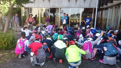お弁当、水筒、おやつを受け取って、登山の出発準備です。