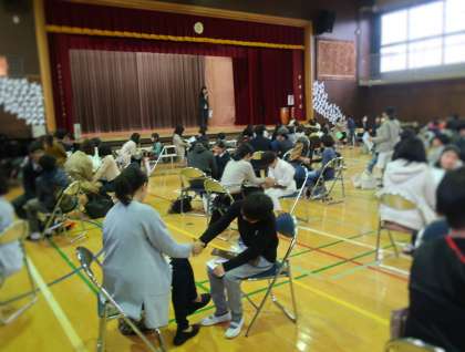 4年生全員でリコーダー演奏をした後、親子ワークを行いました。