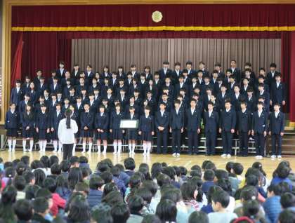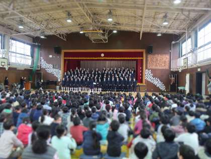 駒留中学校の3年生が来校し、すてきな合唱を聞かせてくれました。