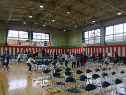 明日の卒業式の式場の準備を、5年生が頑張って進めてくれました。