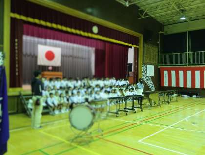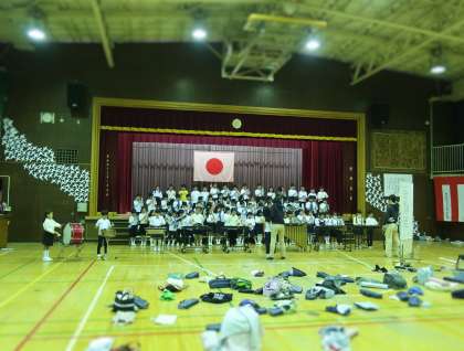 明日の入学式に向けて、新2年生が歓迎アトラクションの練習をしています。
