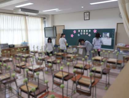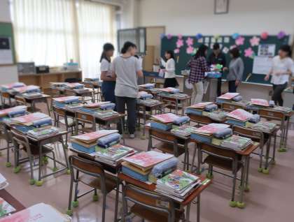 1年生が使う教室をきれいに飾り付けたり、机をふいたり、教科書や学習道具を準備したりしてくれました。