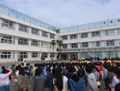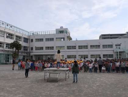 黄色い帽子をかぶった1年生の話の聞き方が上手でした。