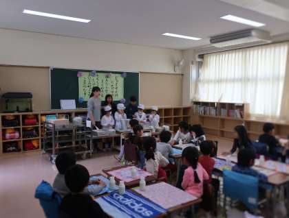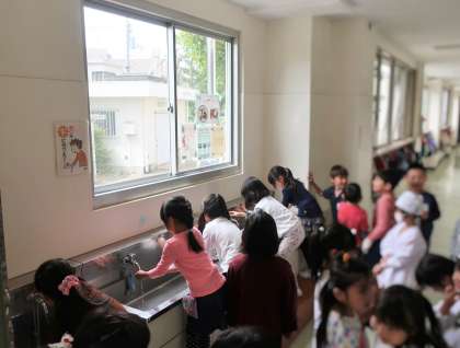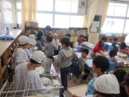 手を洗って、机の上にランチョンマットを敷いて、静かに待ちます。
