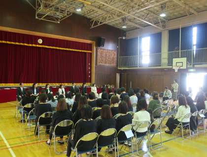 退職・転出した教員と転入した教員の挨拶に続き、新しく会員になられた1年生の保護者の方の紹介がありました。ハンドベルのすてきな演奏の後、懇談の時間となりました。