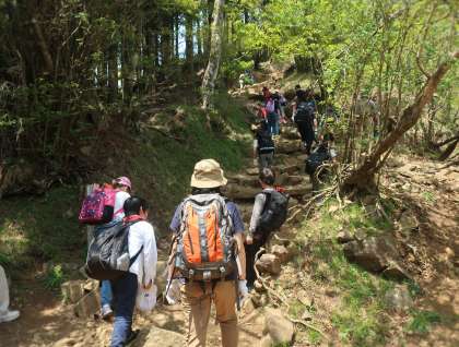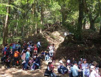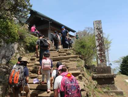 途中休憩をし、声を掛け合って、全員で山頂に到着です。