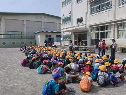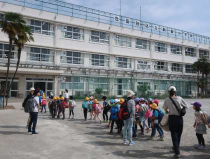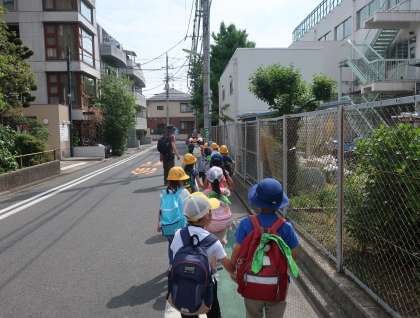 1・2年生の縦割り班で、林試の森公園に向かいます。