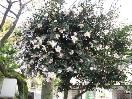 「♪さざんか さざんか 咲いた道 たき火だ たき火だ 落ち葉たき…♪」今はたき火はできませんが、山茶花が満開です。校庭の桜も紅葉し始め里にも秋がやってきました。