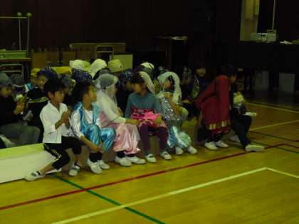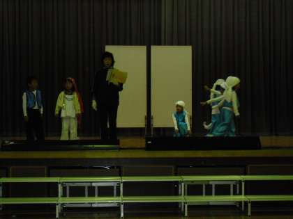 体育館をのぞくと1年生が劇「アイウエオリババ」の練習をしていました。衣装も付けて本格的な練習でした。今から当日が楽しみです。
