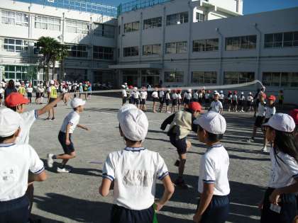 今日の体育集会は、長なわ跳びでした。3分間で何回跳べるかを学級ごとに競いました。校庭いっぱいに全員が跳ぶ様子はまさに「跳びはねる若駒」学年・学級差はもちろんあるのですが、各学級の結果発表のたびに互いに拍手し健闘をたたえ合いました。