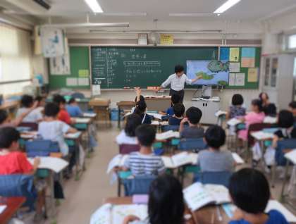 響きの学び舎の4校(駒留中、旭小、中丸小、駒繋小)の教員が中丸小に集まりました。