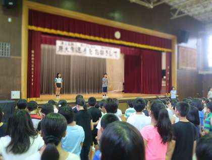 総合的な学習の時間の取組や夏休みの話をしてくれました。