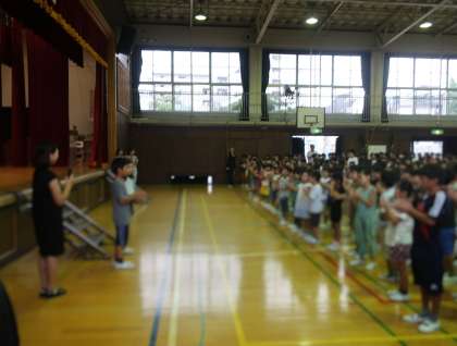 校長の話は、西日本を中心とした記録的な大雨に関してでした。