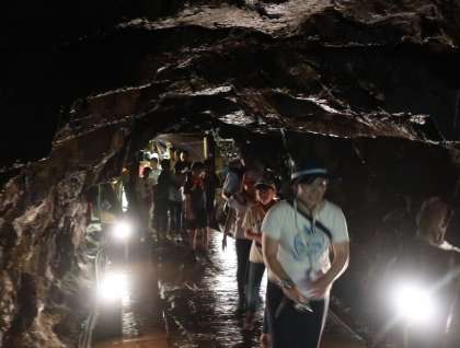 トロッコ列車に乗って、坑道に入ります。