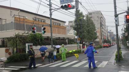 今朝も、雨の中、地域の方や警察の方が児童の登校を見守ってくださいました。