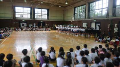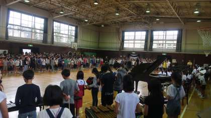 前期音楽委員の最後の伴奏に合わせて、全校で「ビリーブ」を歌いました。