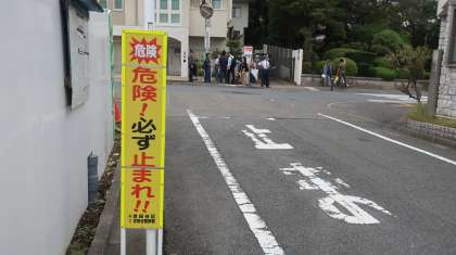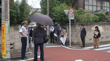 区議、世田谷警察、地域、PTA、おやじの会(繋組)、世田谷区教育委員会、世田谷区役所土木課の方々と学校とで、通学路の安全点検を行い、具体的な対策を考えました。