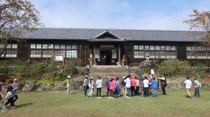 資料館は臨時休館のため、前で集合写真を撮ります。