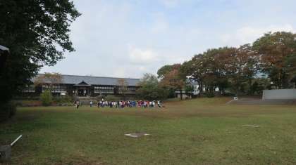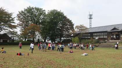 歴史民俗資料館の前の広場で、クラス対抗大ドッジボール大会です。