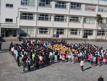 今日の全校朝会の後半は、6年生の連合運動会の壮行会でした。