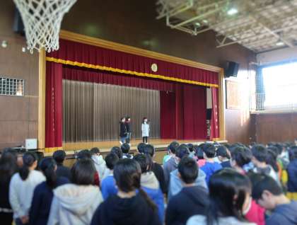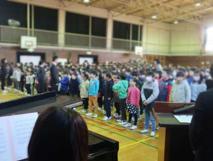 始業式では、2年生の代表児童が3学期に頑張ることを話してくれました。