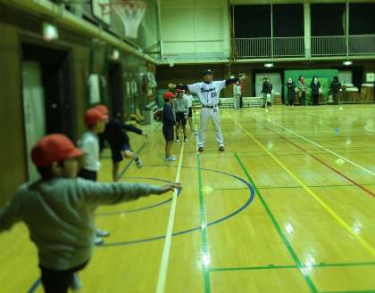 ボールの握り方や体の向き、足の上げ方や腕の使い方など、教えていただきました。