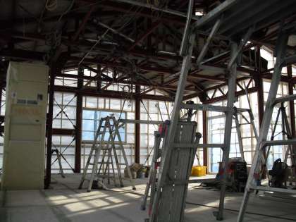 4月オープンに向け保育園の工事が着々と進められています。中の様子を写真に撮りました。右の写真は2階ですが広々したオープンスペースとなっています。