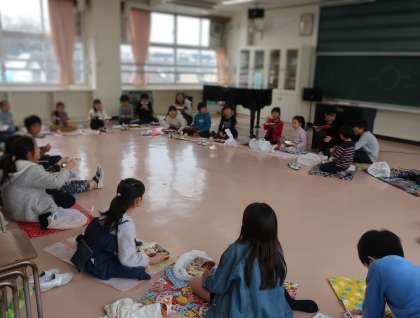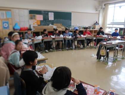 1年間一緒に活動してきた縦割り班でお弁当給食を食べました。