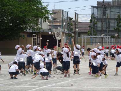 運動会で1年生は「チェッコリ玉入れ」をします。歌に合わせてかわいらしいダンスを踊り、笛の合図で一斉に玉入れをします。笛が鳴ったら投げる、鳴ったら投げるのを止める。ルールを守って取り組むことのできる1年生です。どうぞお楽しみに。