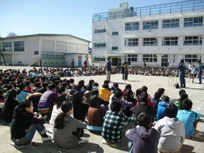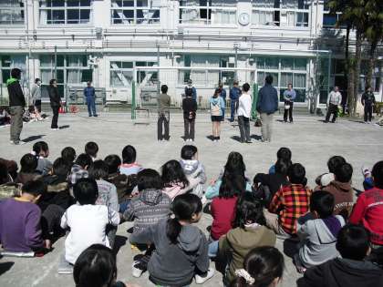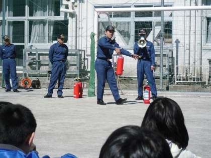 今日は世田谷消防署の方をお招きし「火災通報訓練」「消火器使用訓練」を実施しました。ニュージーランド地震の直後でもあり、子どもたちは真剣に聞き入っていました。
